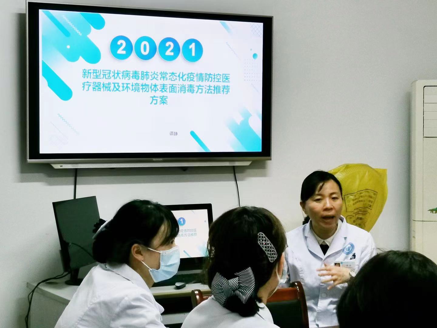 为严格贯彻落实医院感染管理规范,结合疫情防控常态化的指导方针,切实提高我院感染控制规范化、标准化管理水平,2021年4月27日下午,院感科在行政1号楼会议室开展了《最新院内消毒方案和防护用品选用指南》培训。培训由院感科谭静主讲,各科室院感管理员和骨干参加,培训结束后在各科室开展培训,务必达到人人掌握。