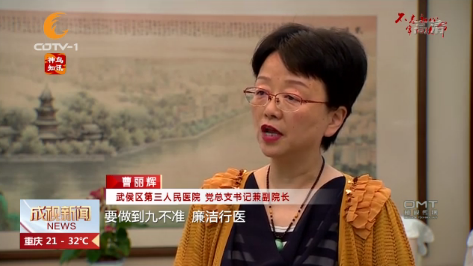 成都电视台对我院党总支书记兼副院长曹丽辉同志的专访于6月12日晚7点30分在成都电视一台《成视新闻》栏目播出。曹丽辉书记表示这是对我院党建工作的肯定,更是对所有党员所做出的努力的肯定,我们将以此次活动为契机,不断夯实医疗质量和医疗服务基础,将党建工作更好地与日常业务工作相结合,开展具有卫健行业特色的“不忘初心、牢记使命”主题教育活动。