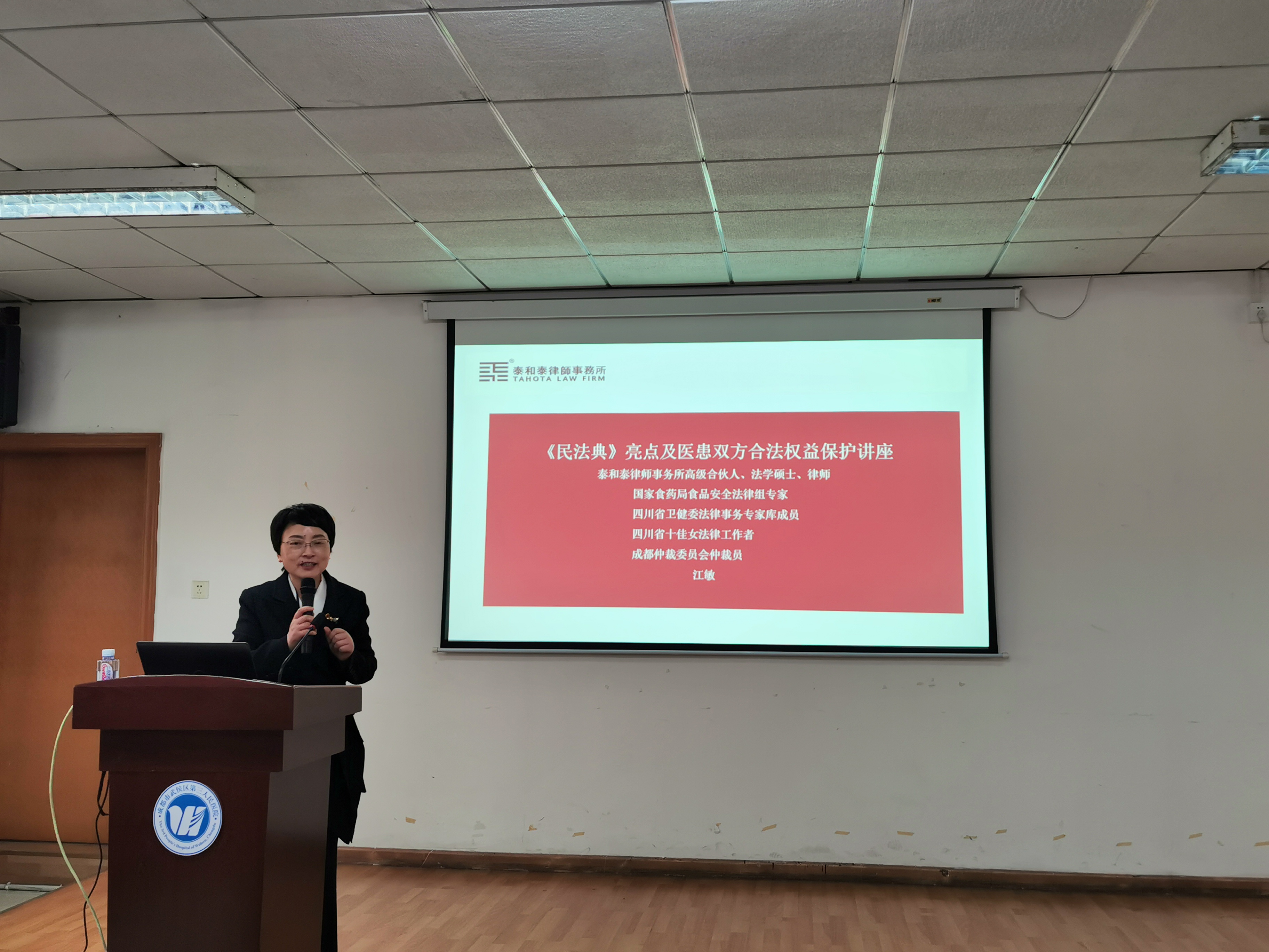 培训会议邀请了泰和泰律师事务所江敏律师为全体人员讲授 《民法典》。江律师从民法典基本概述、民法典基本内容、民法典实质性修改要点、民法典亮点解读、医患双方侵权责任等几个方面,以专业角度,从理论到实践,从立法体系到具体制度进行了全面系统的授课,并且列举了大量实例进行说明,让在场的每一位参会人员获益匪浅。本次培训既有理论高度,又有生动案例,受到全体参会人员的一致好评。